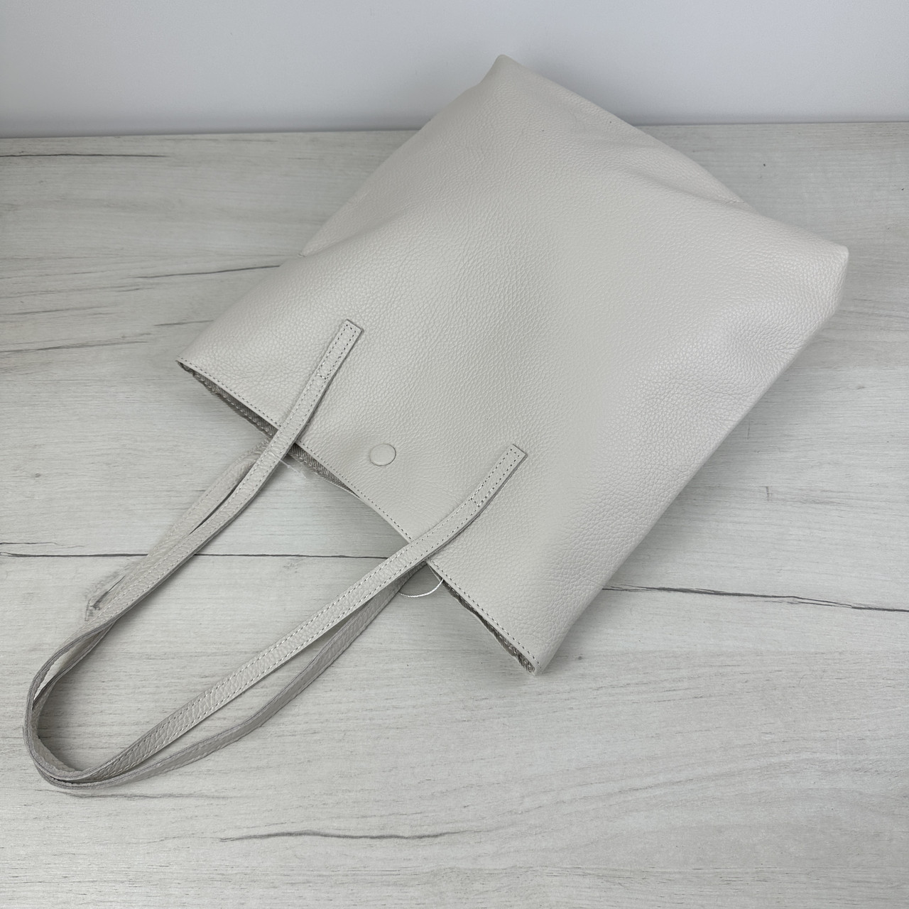 Шкіряна сумка шопер з ручкою на плече С101-КТ-4364 Біла